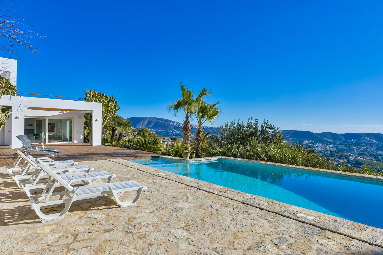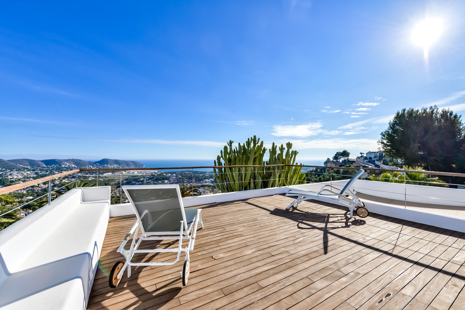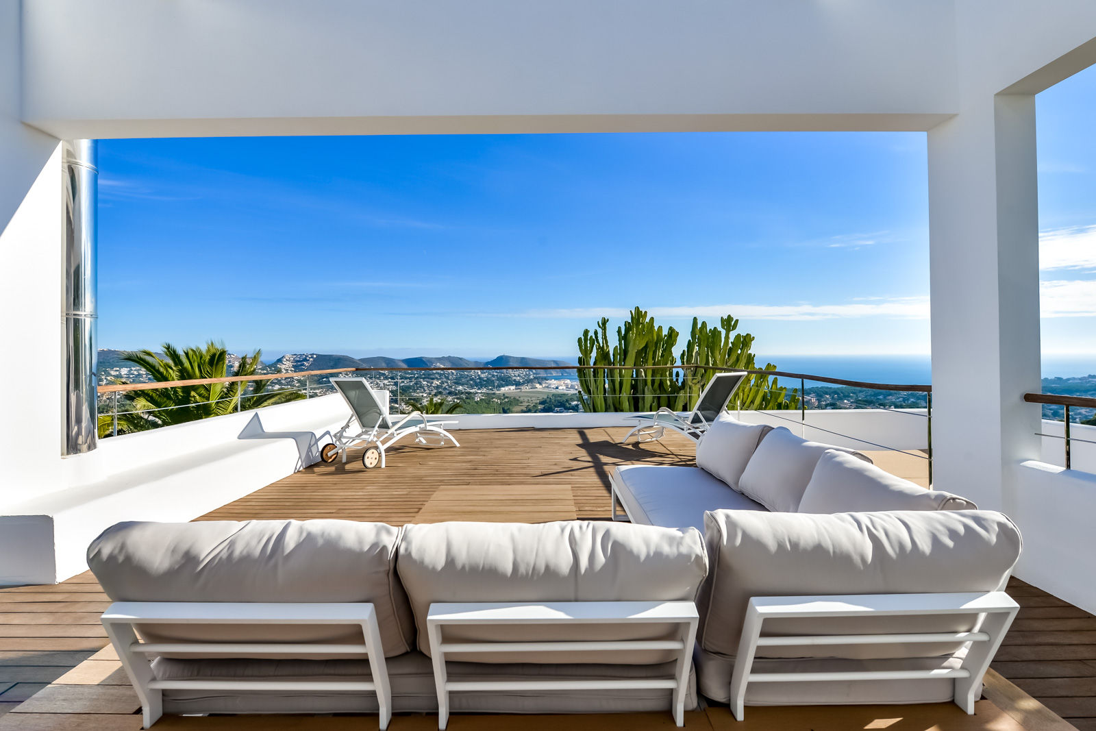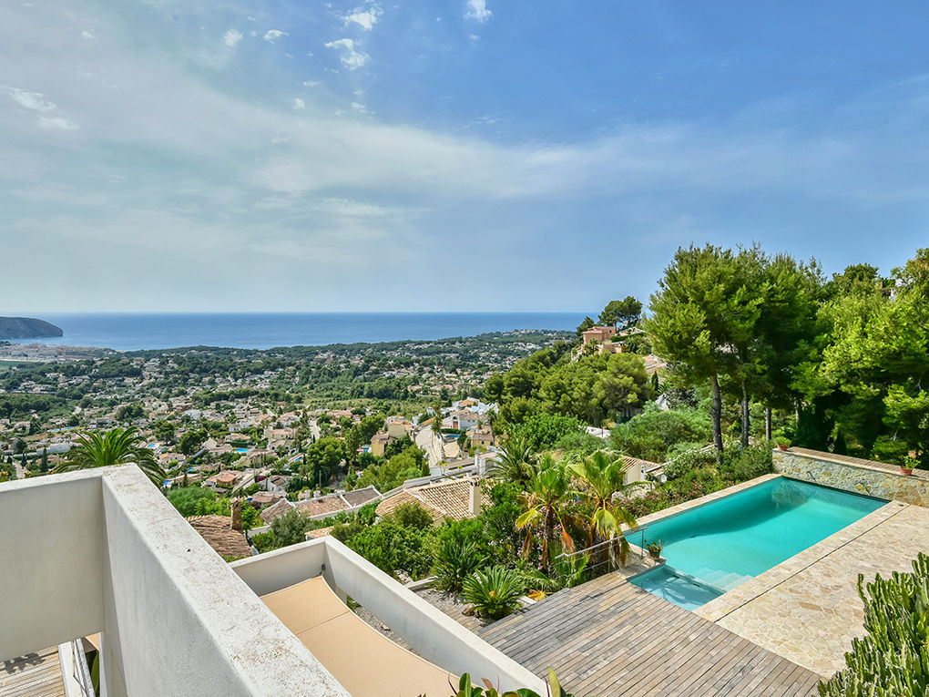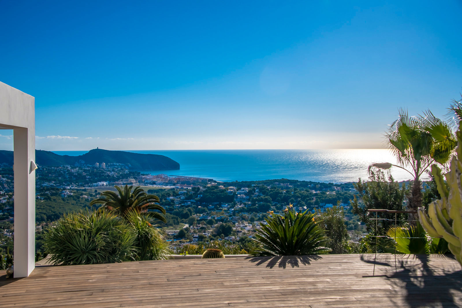 Neue und moderne Luxusvilla mit privatem (beheizbarer) Pool in Moraira an der Costa Blanca für bis zu 6 Gäste, mit atemberaubendem 180º Panoramablick auf das Meer.