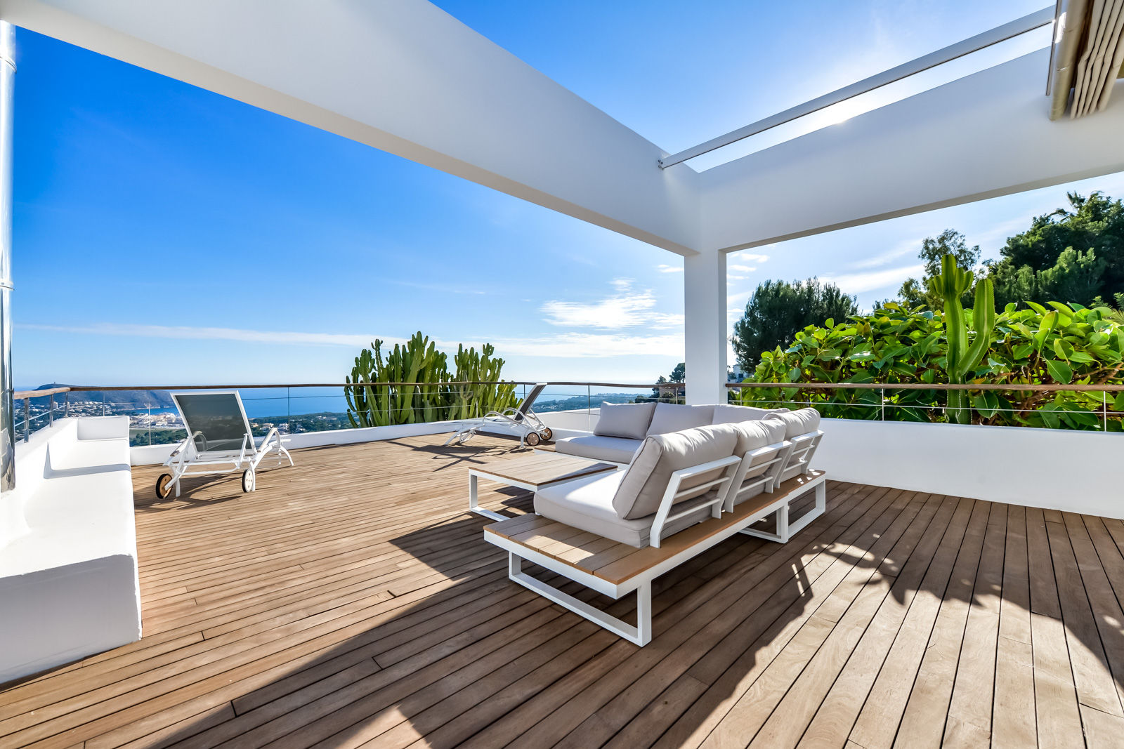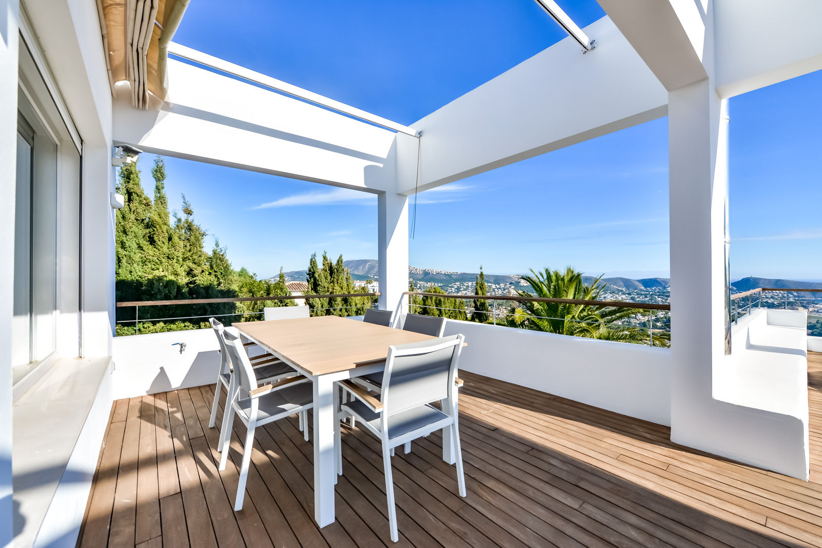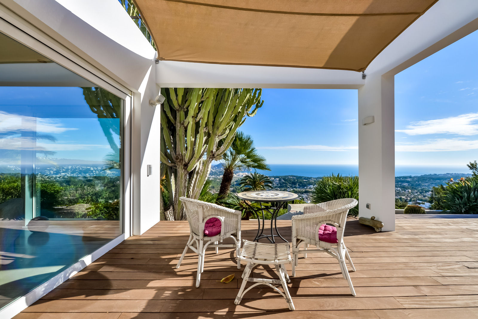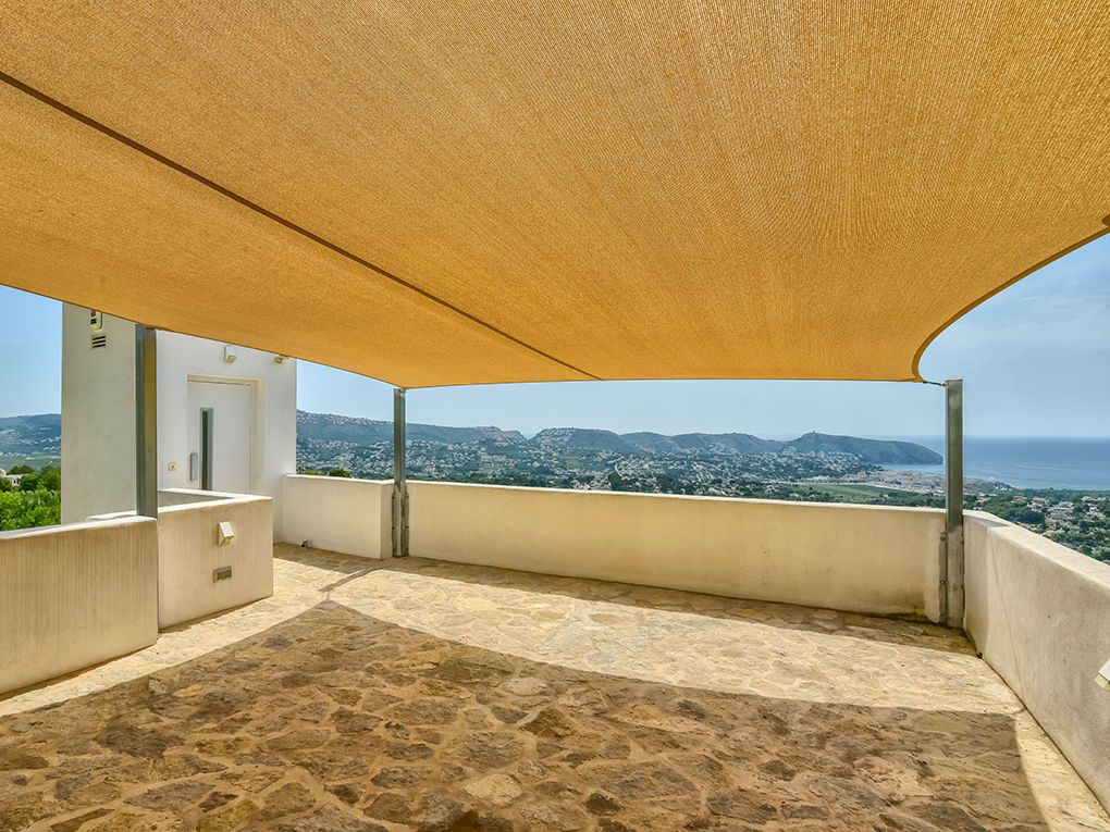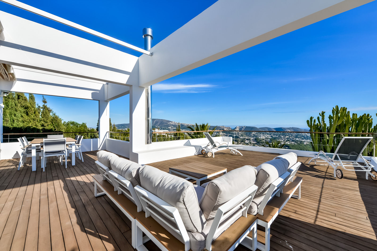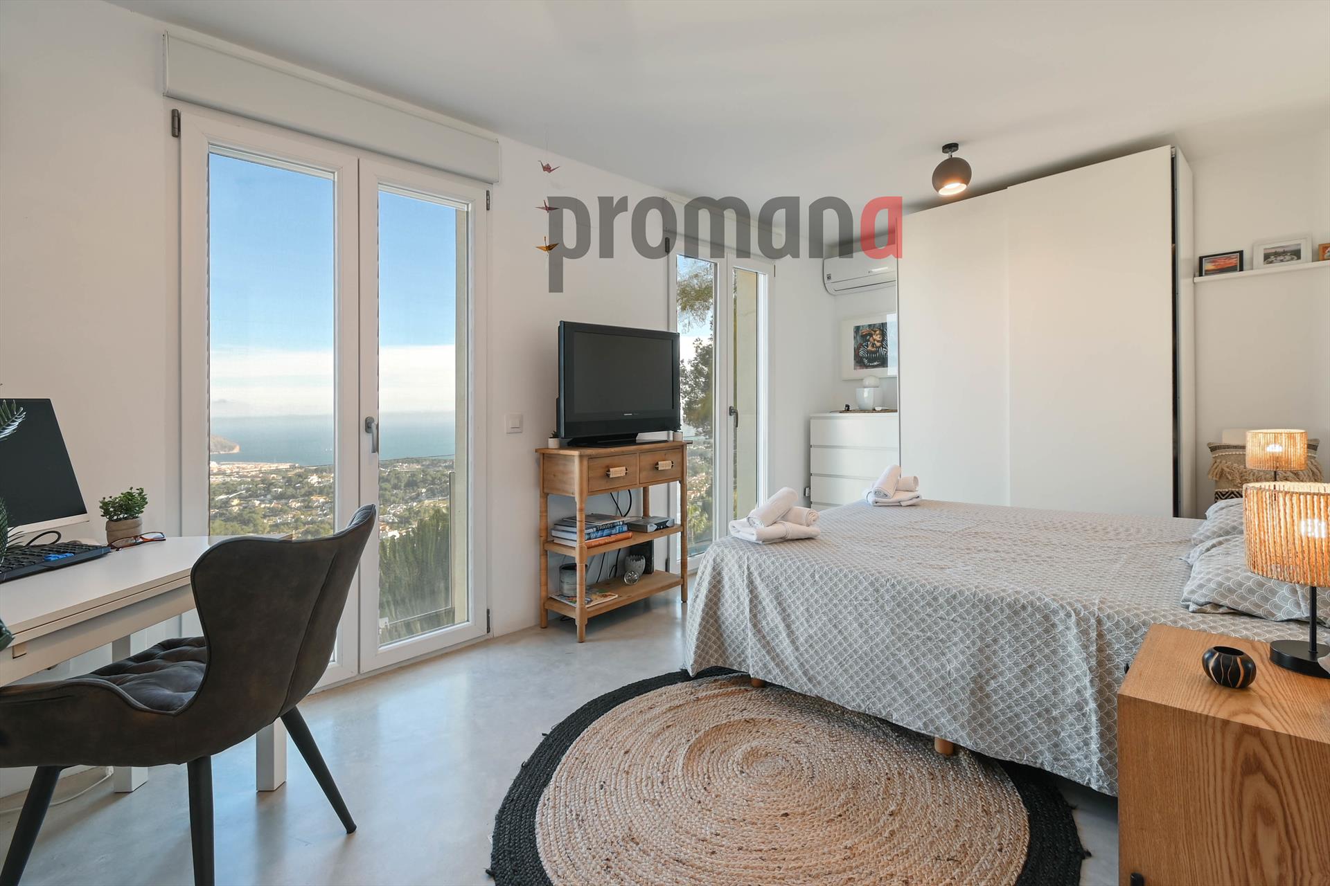 Neue und moderne Luxusvilla mit privatem (beheizbarer) Pool in Moraira an der Costa Blanca für bis zu 6 Gäste, mit atemberaubendem 180º Panoramablick auf das Meer.