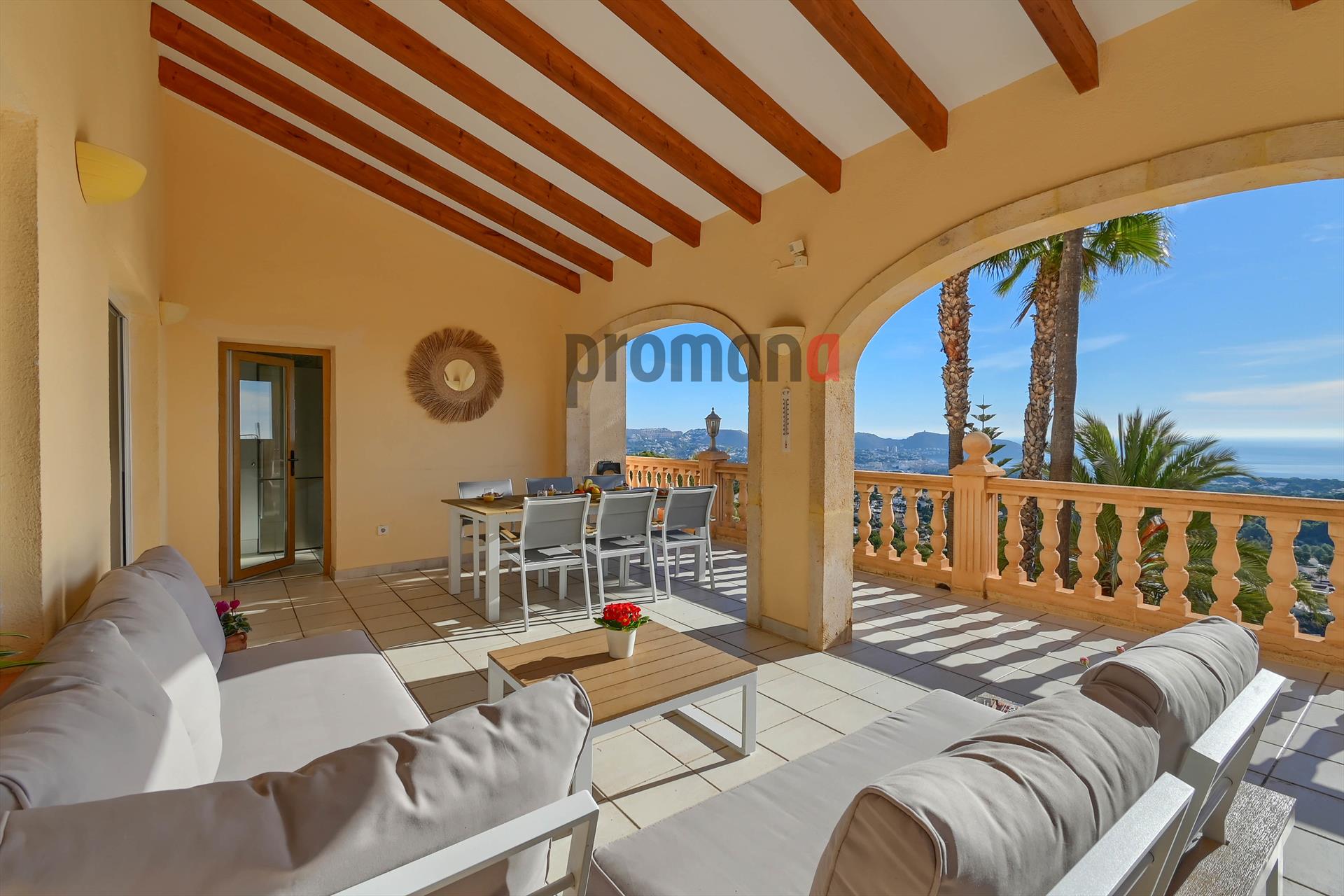 Large and luxury villa in Moraira, on the Costa Blanca, Spain with private pool for 6 persons. The villa is situated in a coastal, hilly and residential area and at 2 km from the beach.
