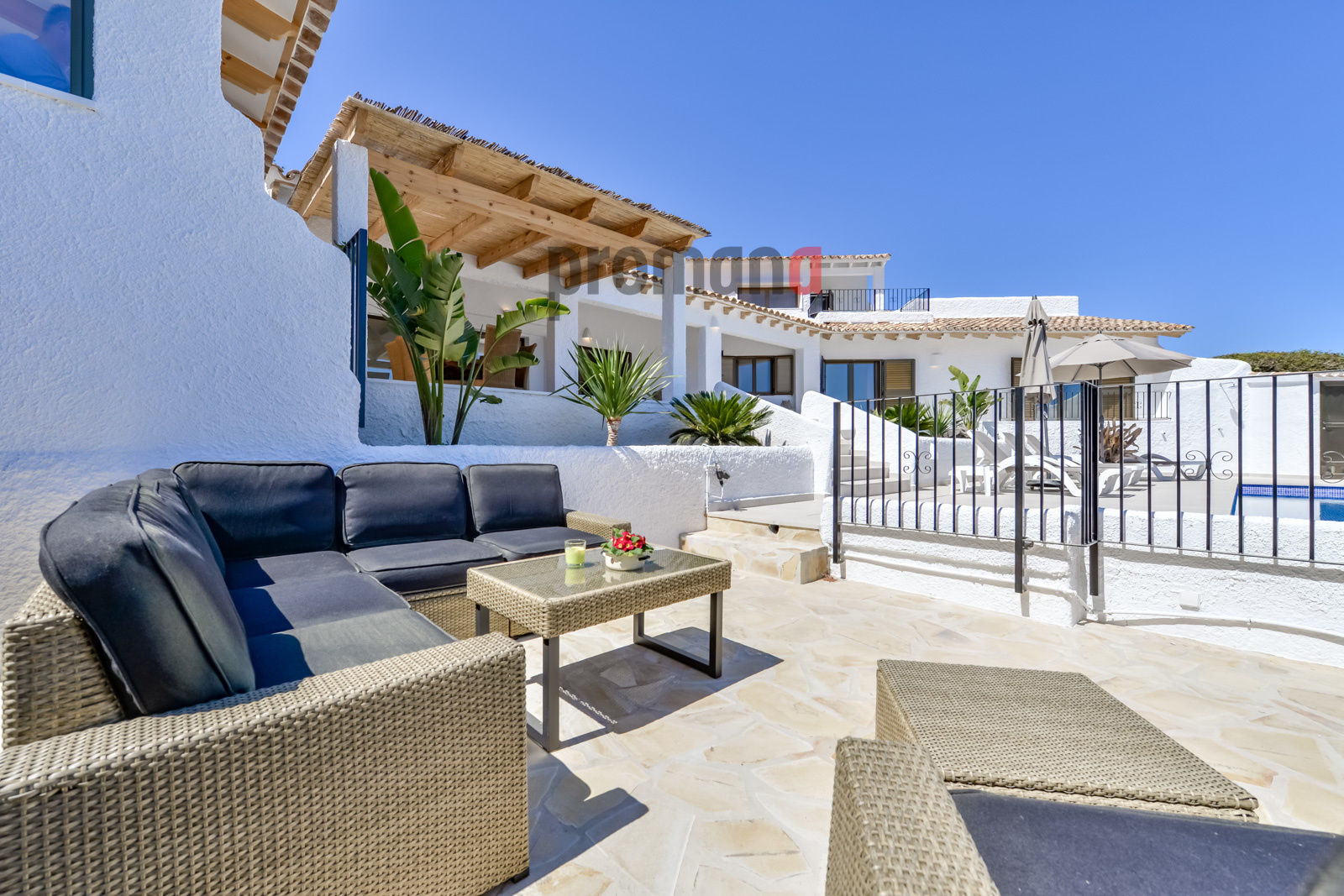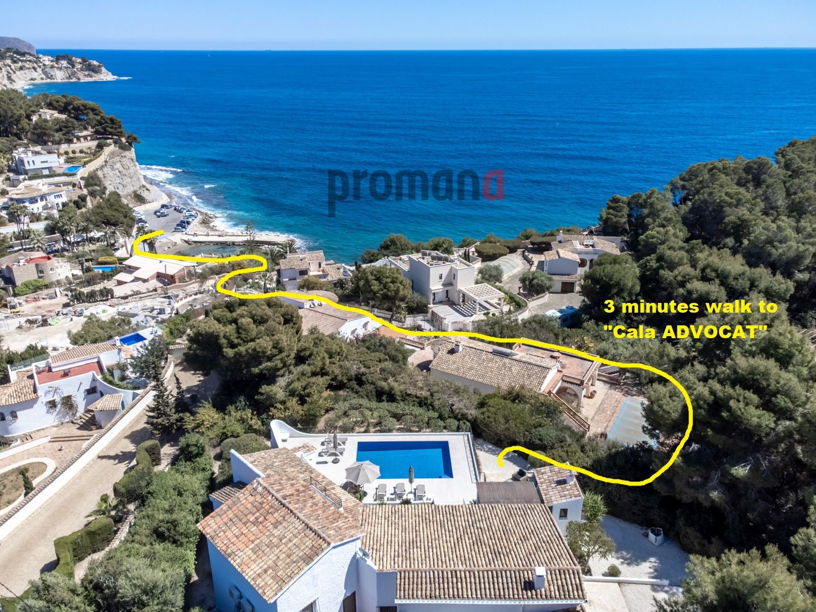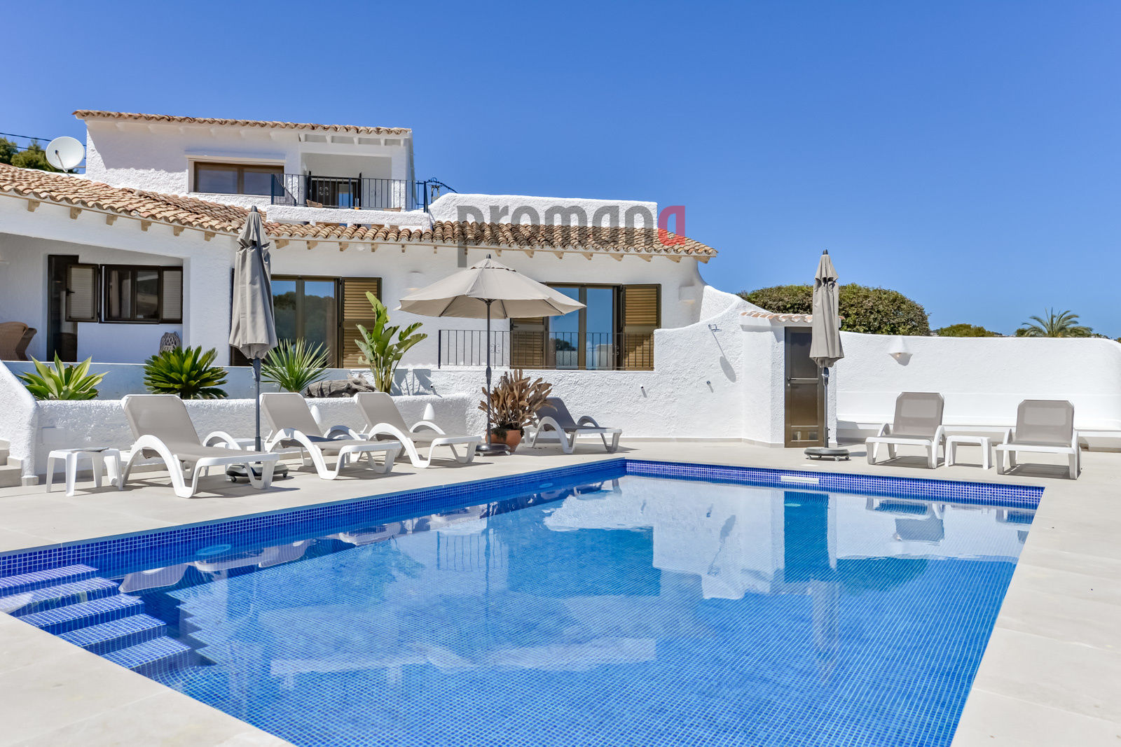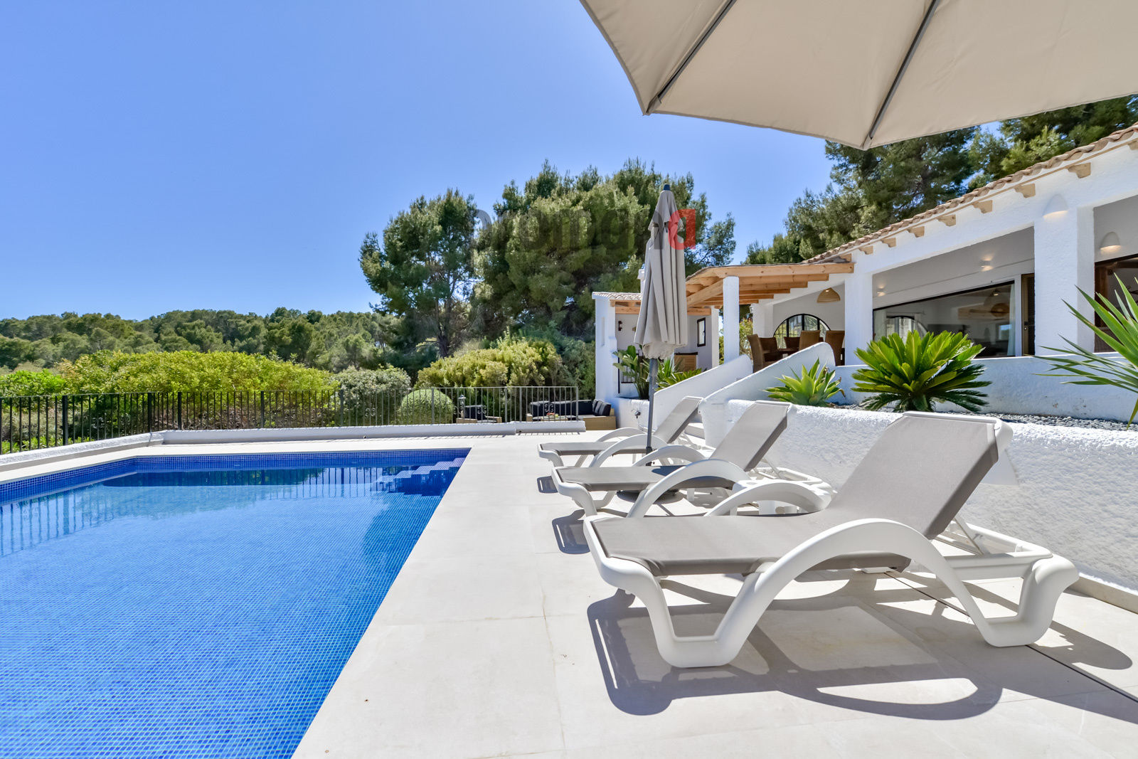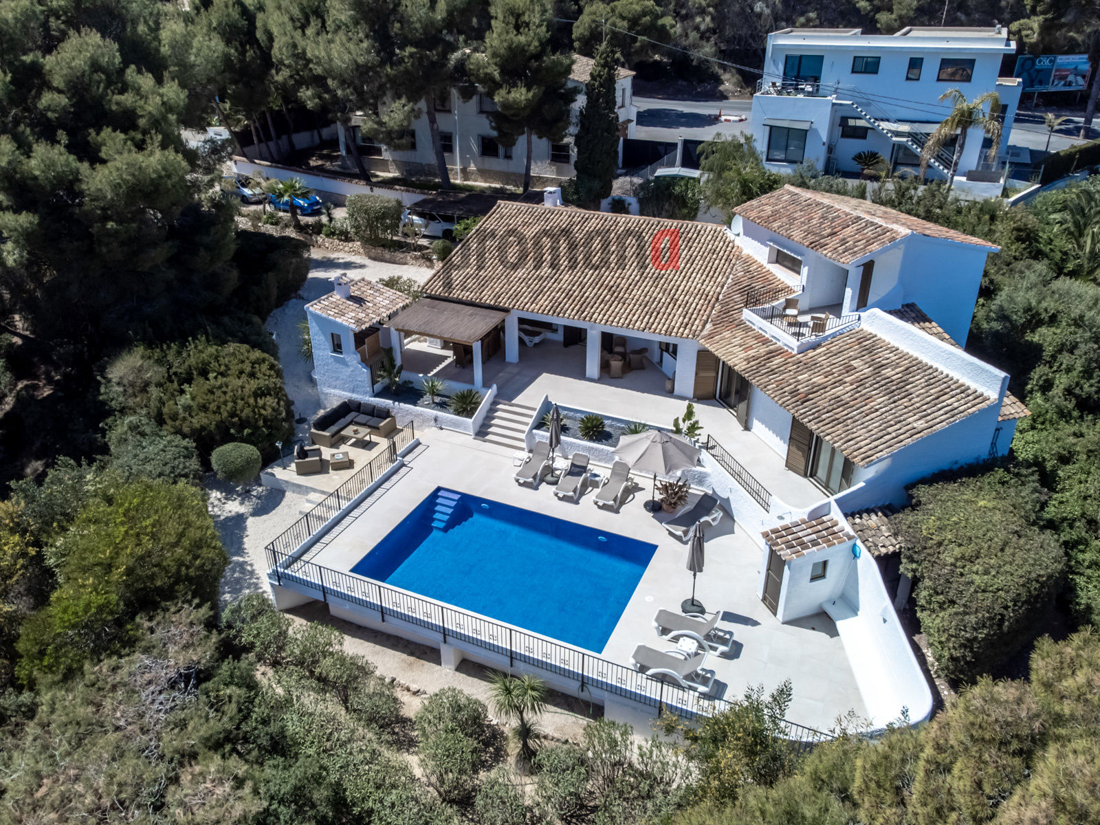Magnifique et luxueuse villa à Benissa, Costa Blanca, Espagne, avec une piscine privée pour 8 personnes. La villa est située dans un quartier résidentiel ensoleillé, boisé et vallonné, à seulement 200 m de la plage.