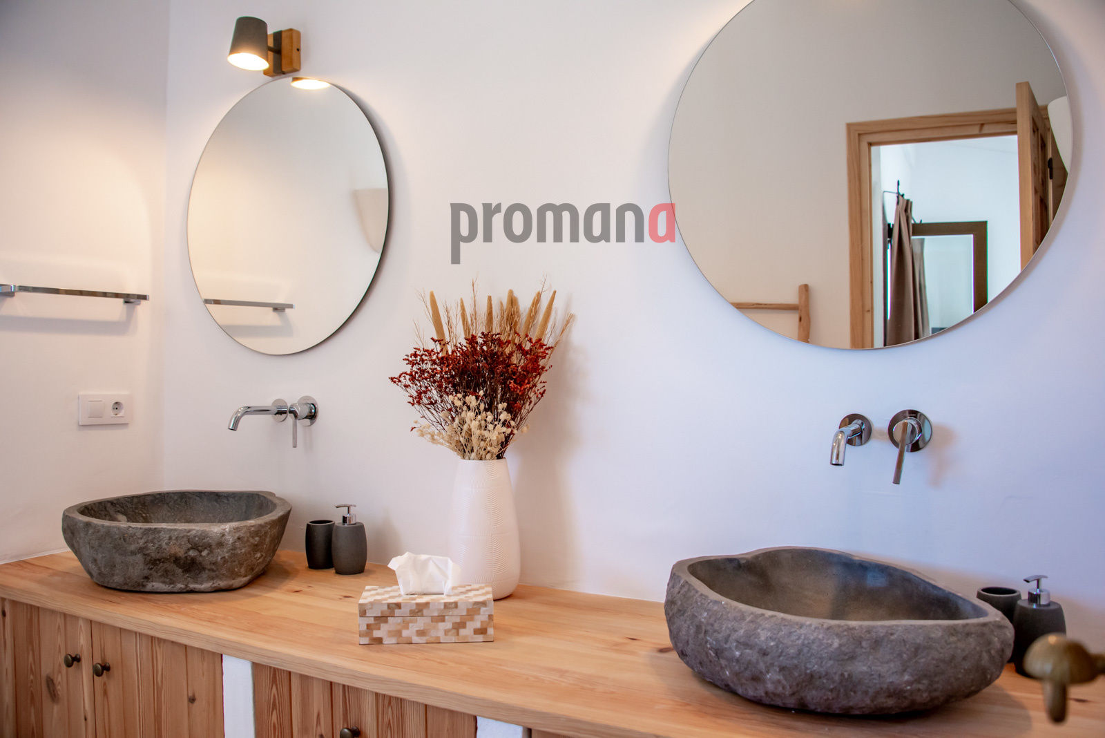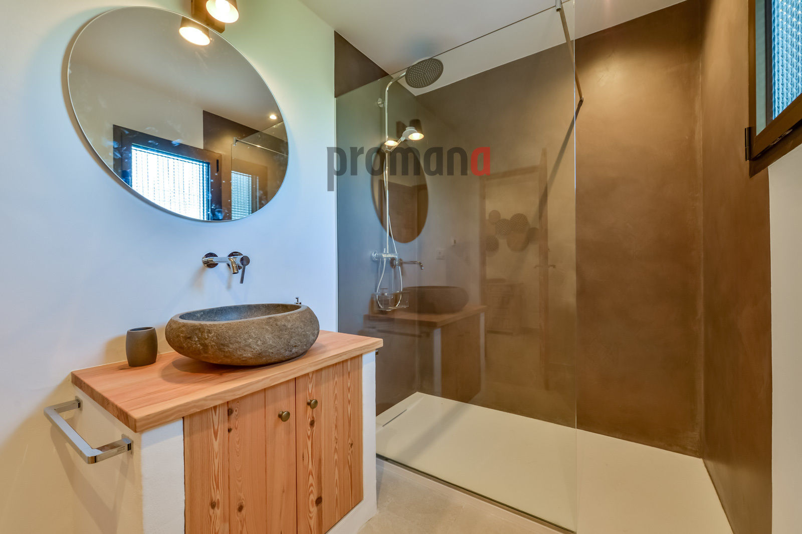 - salle de bain attenante avec double lavabo, douche et sèche-cheveux